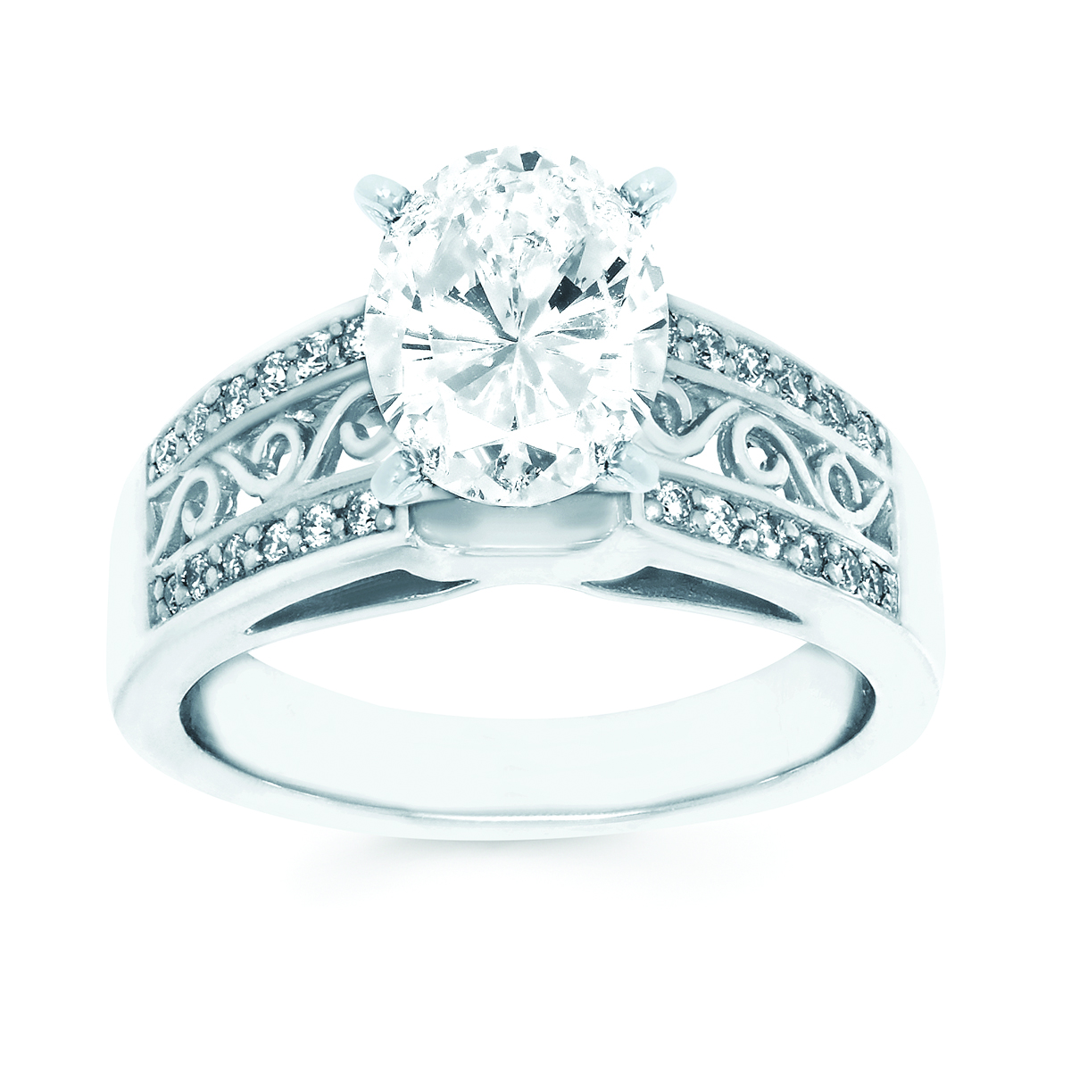 Engagement Ring Heritage Classic Bridal: 1/8 Ctw. Diamond Semi Mount shown with 2 Ct. Oval Center Diamond in 14K Gold