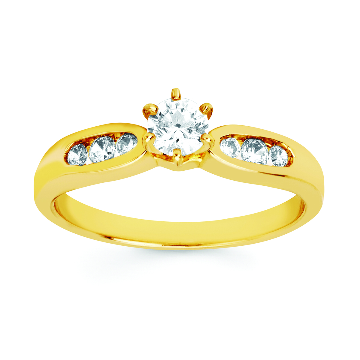 Engagement Ring Classic Bridal: 1/6 Ctw. Diamond Semi Mount shown with 1/4 Ct. Round Center Diamond in 14K Gold