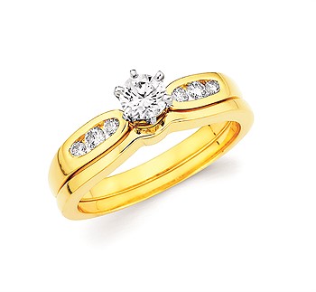 1/6Tw Dia Semi Eng Ring And Gold Wedding Band