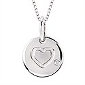 Diva Diamonds® Heart Disk Pendant In Sterling Silver With .01 Ct. Diamond With 18" Box Chain (Adjustable To 16") And Lobster Claw Clasp