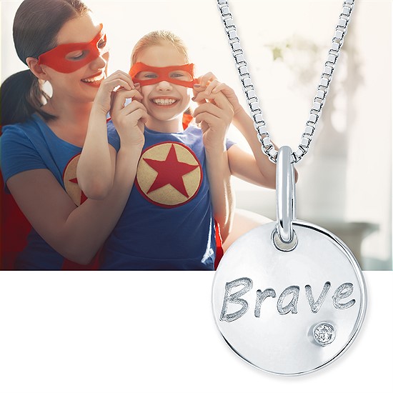 Diva Diamonds® Brave Disc Pendant In Sterling Silver With .01 Ct. Diamond With 18" Box Chain (Adjustable To 16") And Lobster Claw Clasp