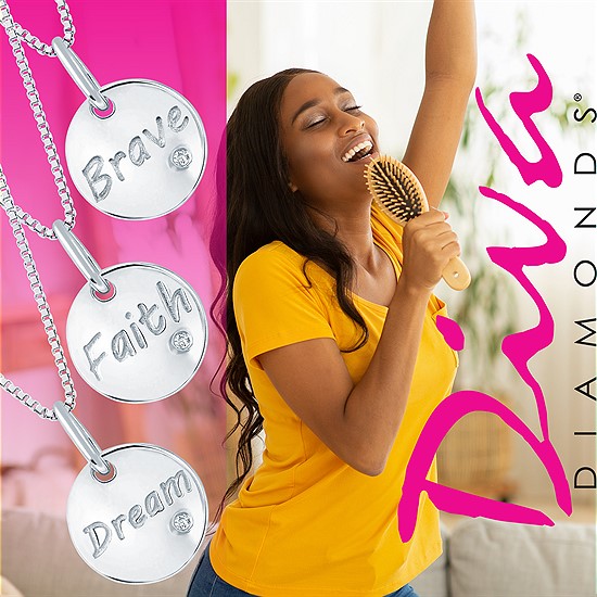 Diva Diamonds® Faith Disc Pendant In Sterling Silver With .01 Ct. Diamond With 18" Box Chain (Adjustable To 16") And Lobster Claw Clasp