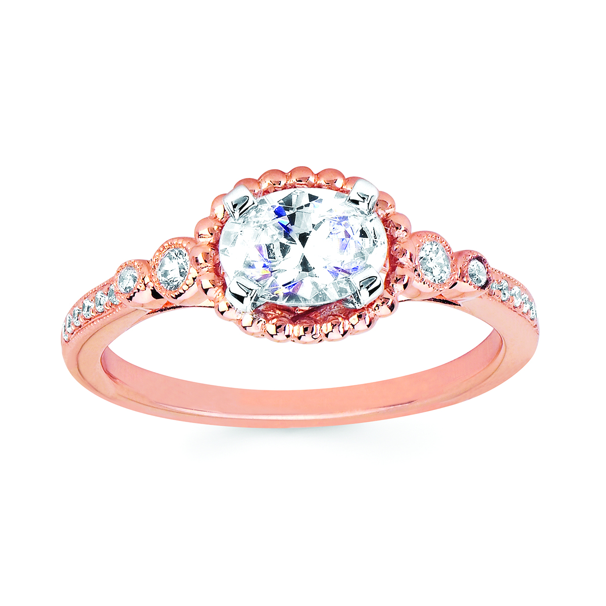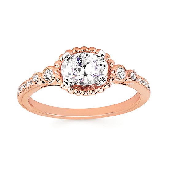 Engagement Ring Forever ElegantĀ® .12 Ctw. Diamond Semi Mount shown with 3/4 Ct. Oval Center Diamond in 14K Gold