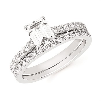 Engagement Ring Classic Bridal: 1/4 Ctw. Diamond Semi Mount shown with 3/4 Ct. Emerald Cut Center Diamond in 14K Gold