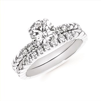 Engagement Ring Modern Bridal: 1/6 Ctw. Diamond Semi Mount shown with 1 Ct. Round Center Diamond in 14K Gold