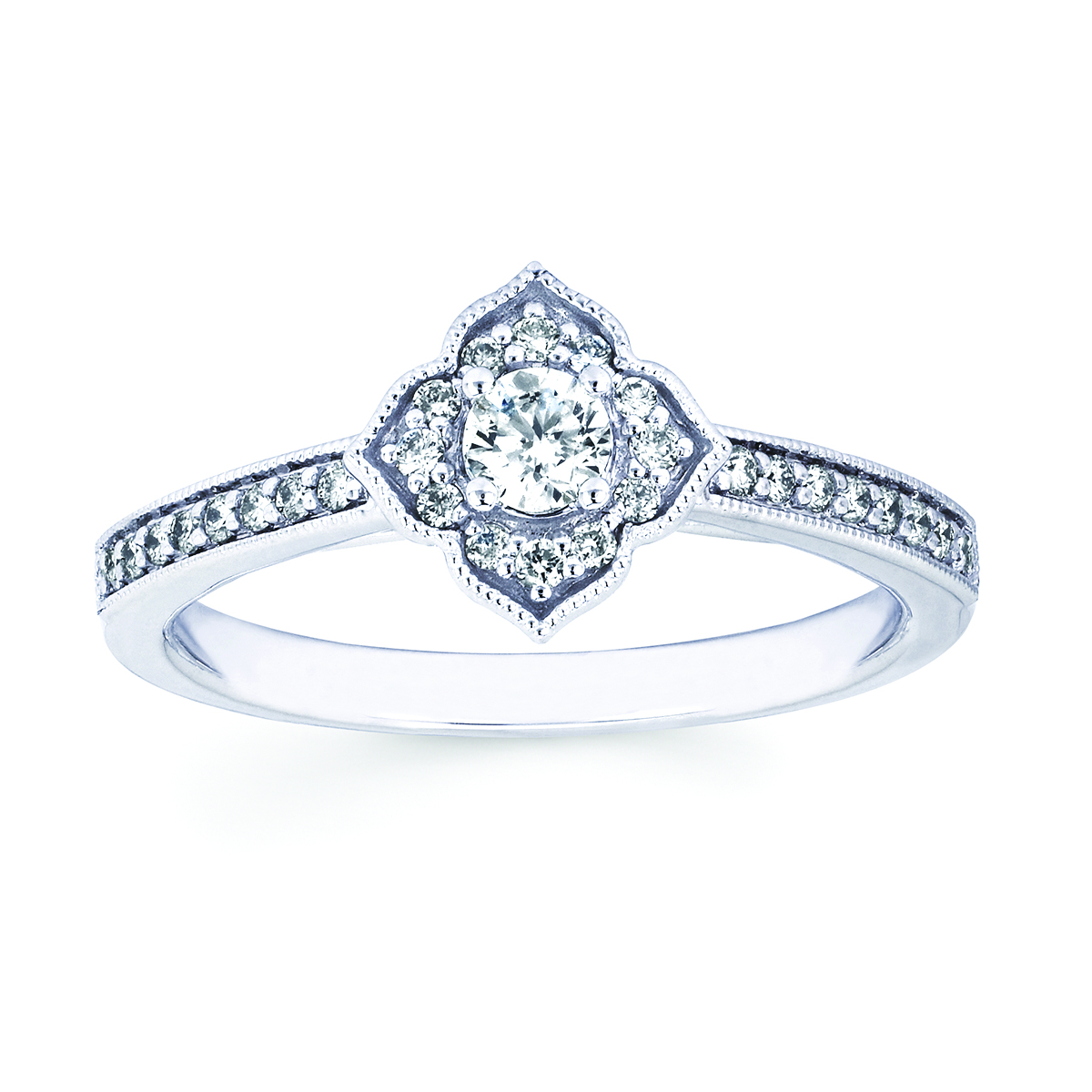 Engagement Ring Vintage: 1/5 Ctw. Diamond Semi Mount Available with 1/8 Round Center Diamond in 10K Gold