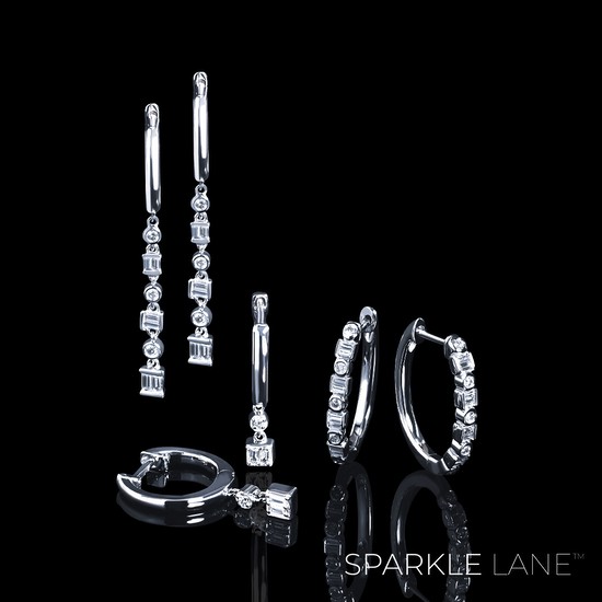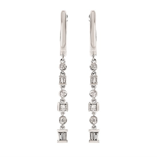 1/4 Ctw. Diamond Baguette & Round Hoop Earrings In Sterling Silver