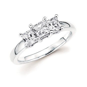 1 Ctw. Prong Set Princess Cut 3 Stone Diamond Anniversary Ring In 14K Gold